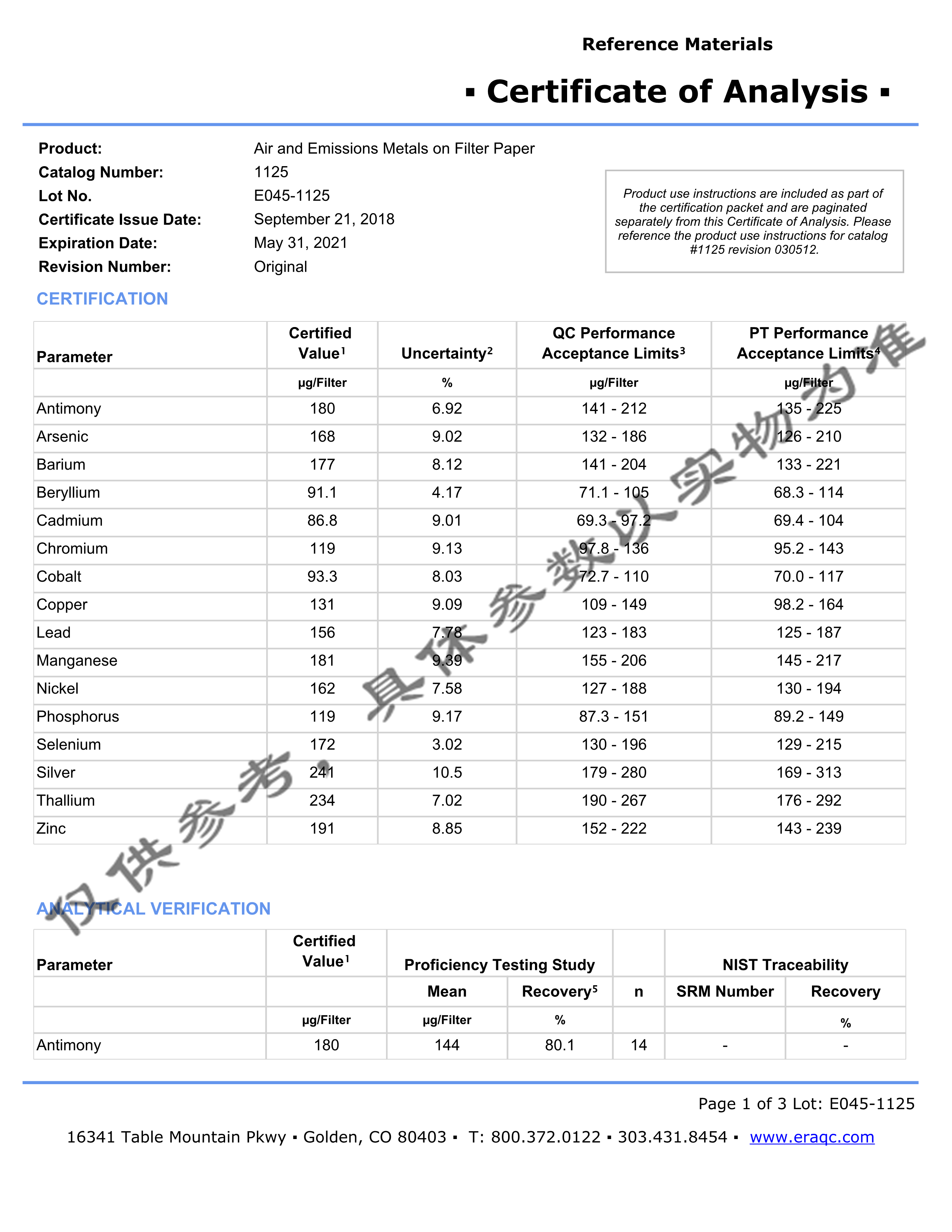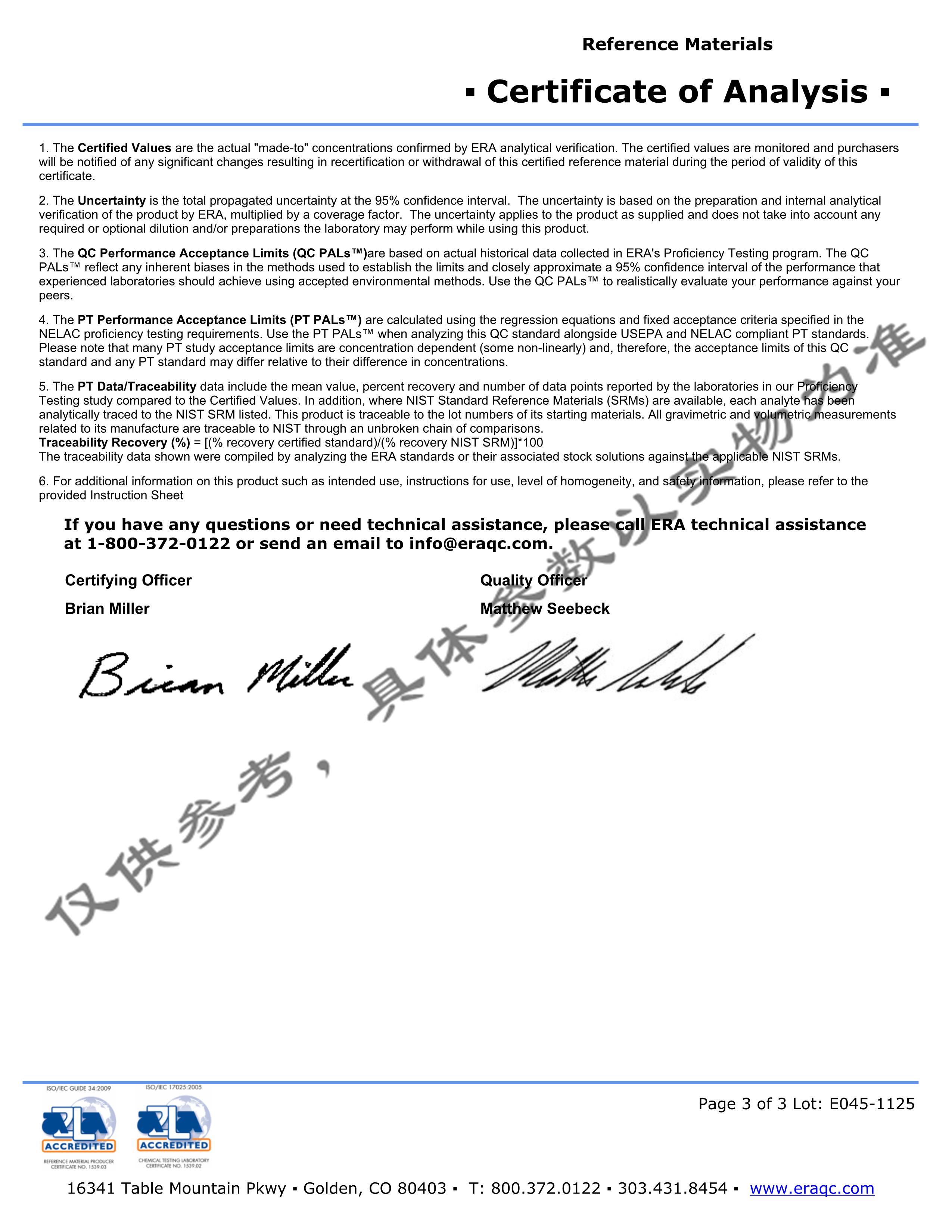 生命科学:ERA公司自2000年在美国开始生产生命科学领域标准品,并在2006年在英国设立分厂,两个工厂均以ISO Guide 34:2008认证为标准,确保为客户提供最高品质的产品,并符合相关认证要求,及文件支持。ERA同时还拥有其它认证,例如ISO 9001:2008;ISO Guide17025:205;以及ISO Guide 17043认证。很少有厂家可以同时按照多个ISO标准执行,然而ERA已经做到了。对于TOC标准品,ERA目前是世界上唯一一家通过标准品级别Guide34认证的企业。