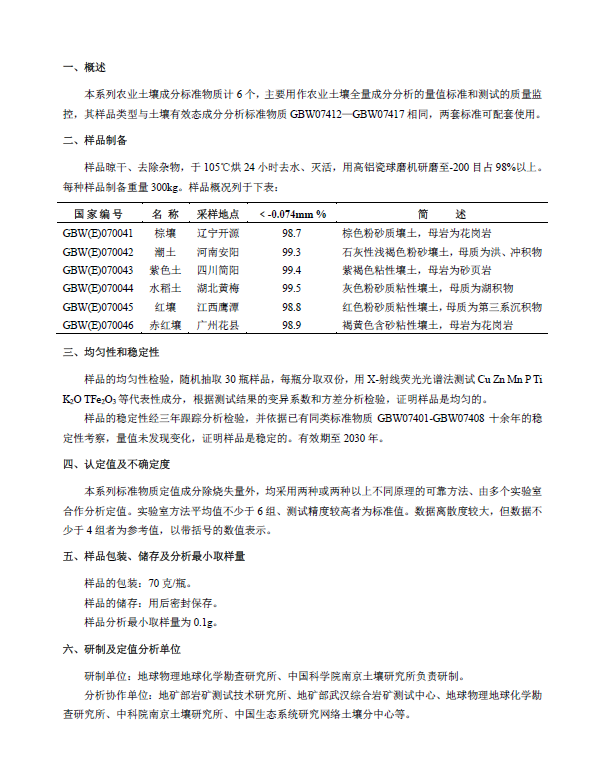 AST-6 广州花县赤红壤 农业土壤成分分析标准物质
