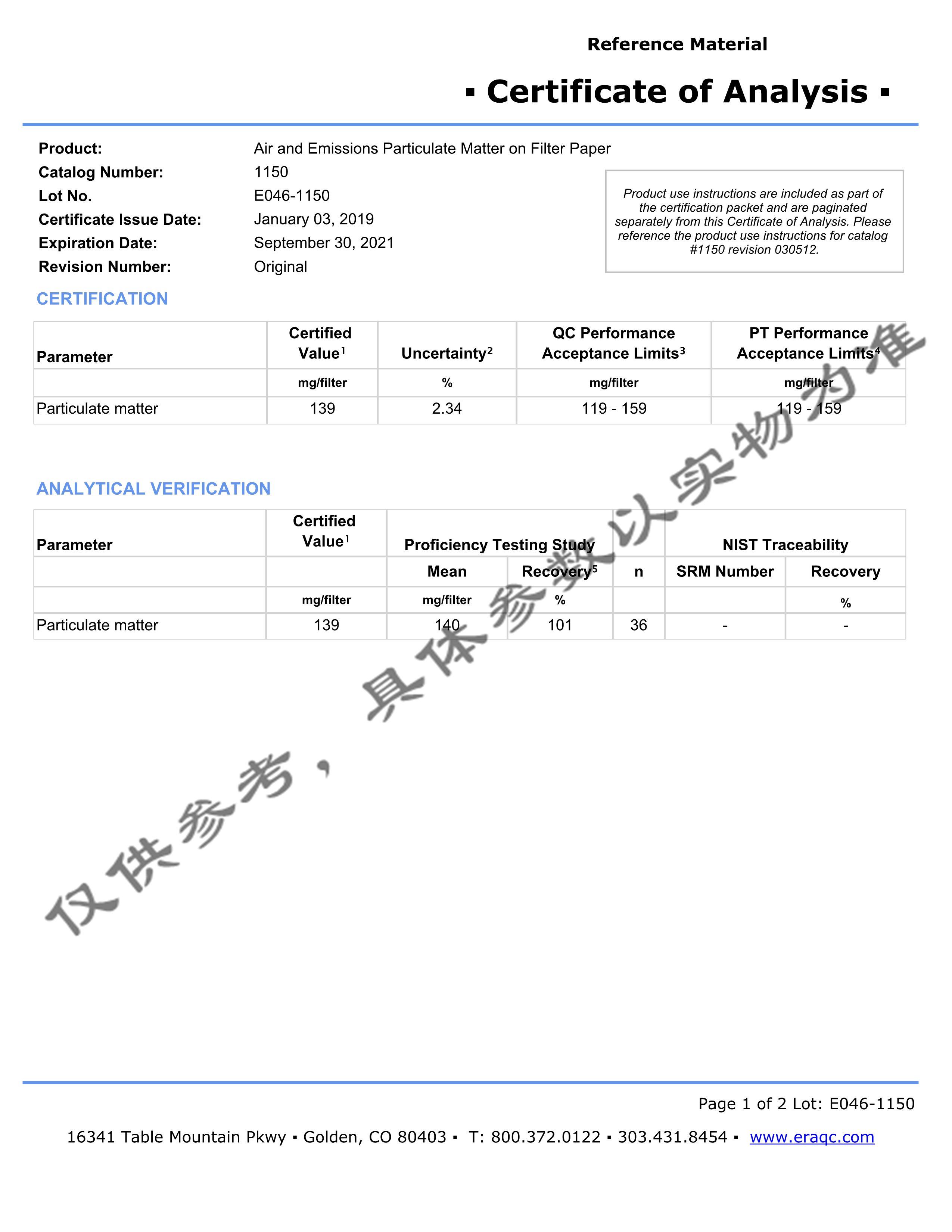 生命科学:ERA公司自2000年在美国开始生产生命科学领域标准品,并在2006年在英国设立分厂,两个工厂均以ISO Guide 34:2008认证为标准,确保为客户提供最高品质的产品,并符合相关认证要求,及文件支持。ERA同时还拥有其它认证,例如ISO 9001:2008;ISO Guide17025:205;以及ISO Guide 17043认证。很少有厂家可以同时按照多个ISO标准执行,然而ERA已经做到了。对于TOC标准品,ERA目前是世界上唯一一家通过标准品级别Guide34认证的企业。