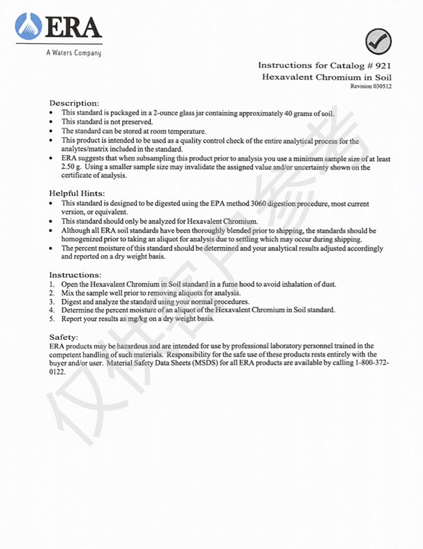 美国ERA公司成立于1977年,是最早为全球实验室提供数千种标准品和能力验证产品的生产厂家,并涉及多个行业。后被美国Waters公司收购,依靠母公司Waters庞大的支持力度,ERA不断壮大,现为全球80多个国家提供生命科学领域和环境领域标准品。