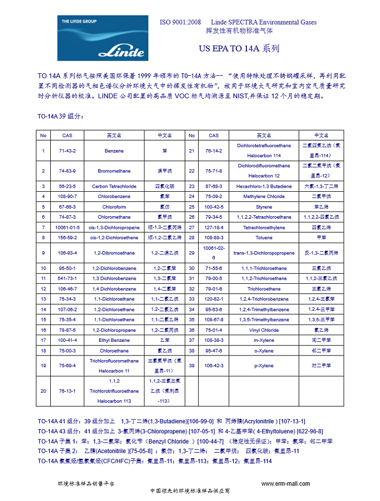 LINDE TO 14A 氯代烃子集 19组分 标准气体
