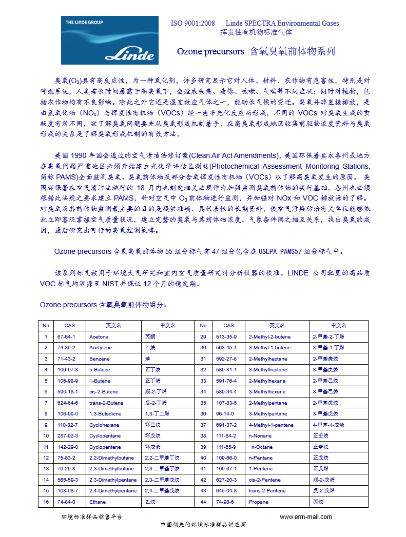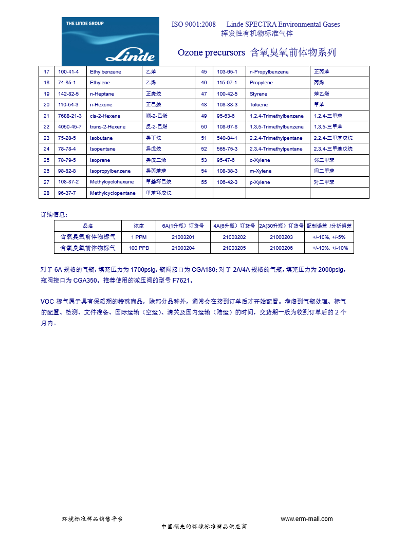 LINDE 含氧臭氧前体物 55组分 标准气体