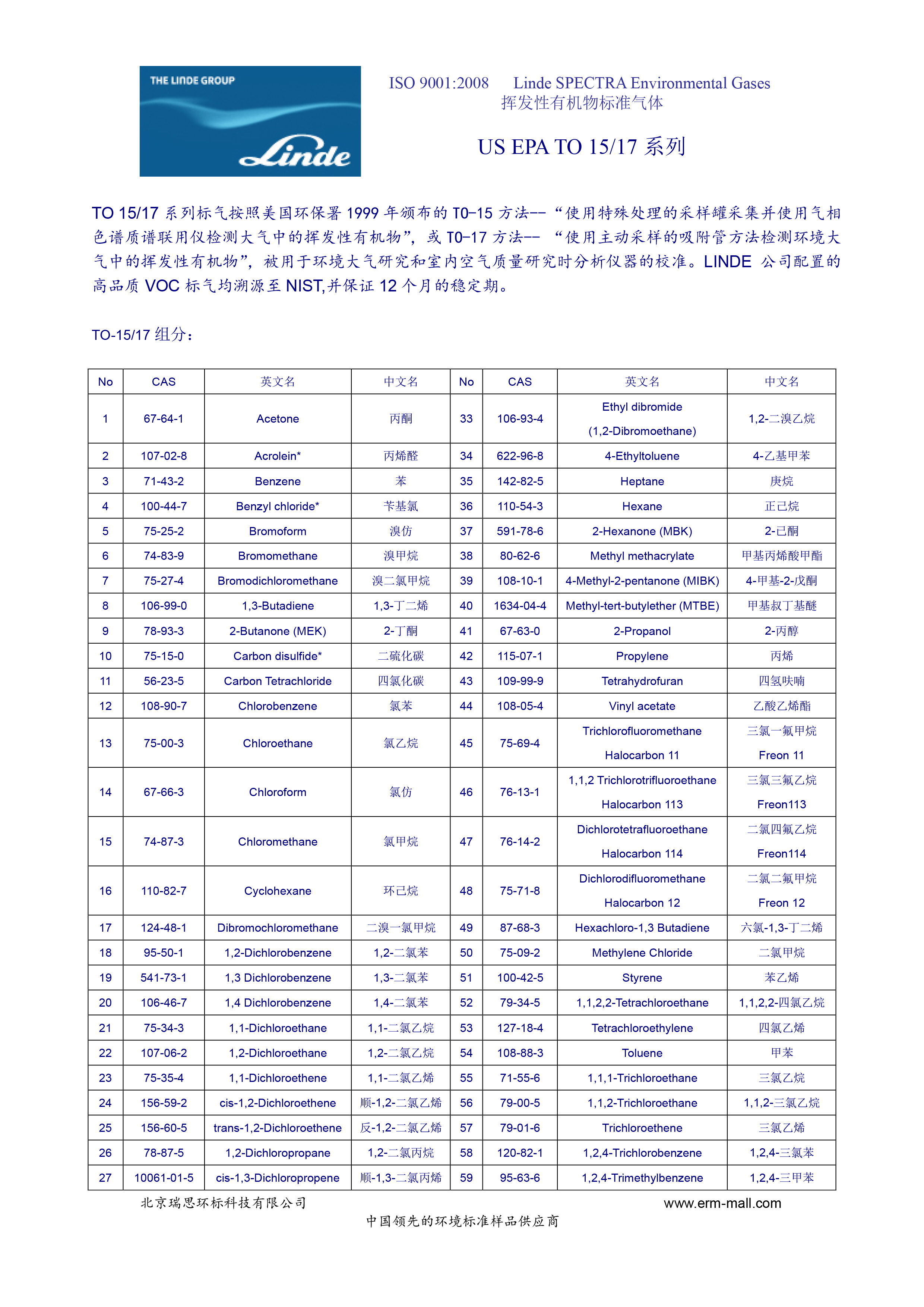 TO15系列标准气体